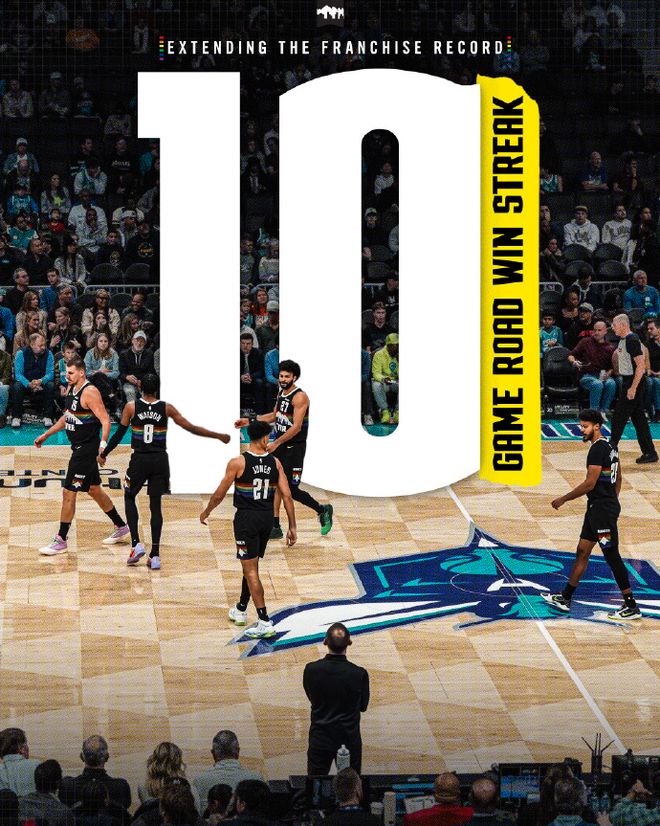 掘金滅黃蜂豪取客場(chǎng)10連勝:約基奇28+9+11助攻超喬丹 穆雷34分